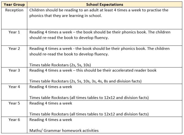 Below is a summary of the general home learning expectations for the school.